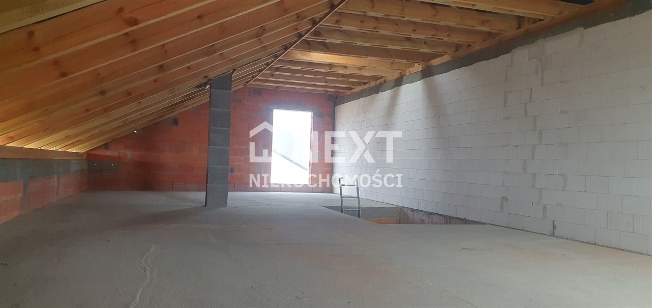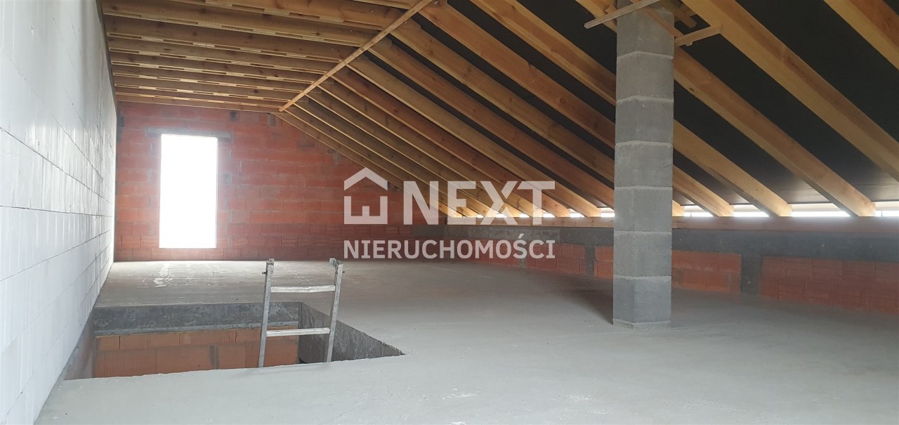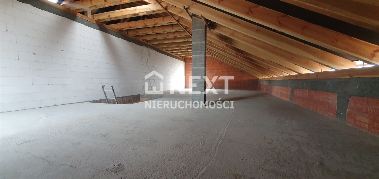 STROP TERRIVA Dużym atutem nieruchomości jest możliwość zagospodarowania poddasza o powierzchni około 60 m2, co daje dodatkowy potencjał aranżacyjny – można stworzyć tam dwa dodatkowe pokoje, łazienkę, otwartą przestrzeń na biuro, salę zabaw dla dzieci, pokój gościnny lub gabinet do pracy. Każdy lokal posiada 89,8 m2 powierzchni użytkowej i usytuowany jest na działce o powierzchni ok.375m², co zapewnia komfortową przestrzeń zarówno wewnątrz, jak i na zewnątrz budynku. Budynki wyposażone są w pełne media (prąd, woda, kanalizacja, gaz). Rozkład pomieszczeń obejmuje: - przestronny salon z aneksem kuchennym, który stanowi serce domu, - 3 ustawne sypialnie, - łazienkę z miejscem na wannę lub prysznic, - WC, - korytarz łączący wszystkie pomieszczenia, - pomieszczenie gospodarcze – idealne na pralnię, spiżarnię lub schowek.