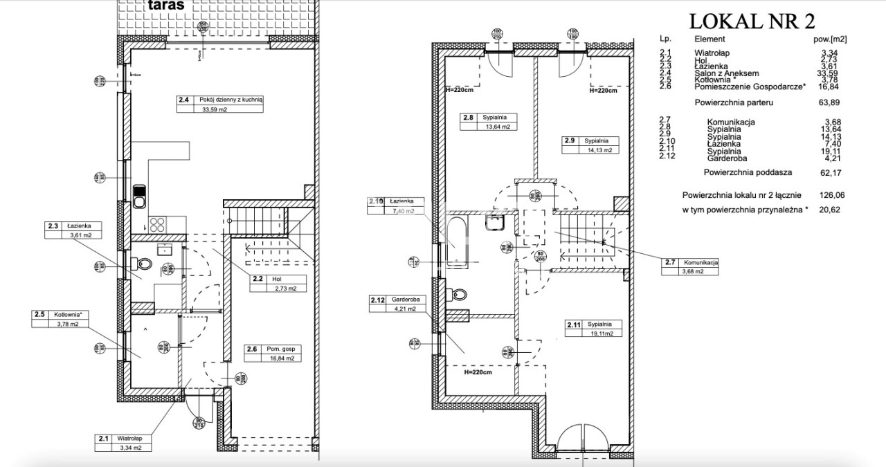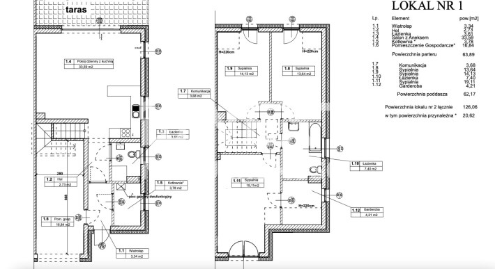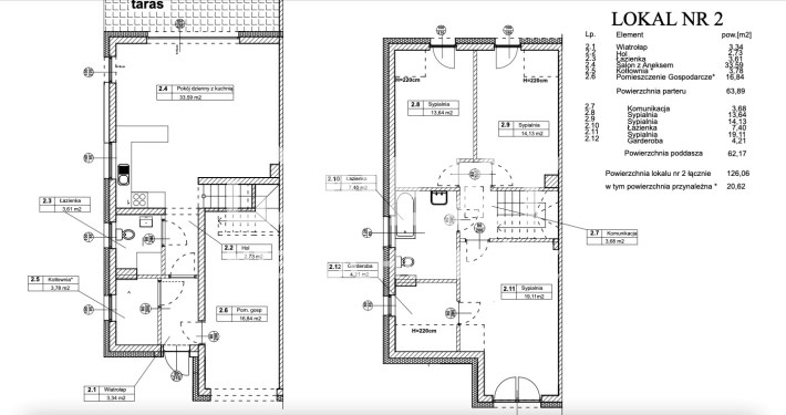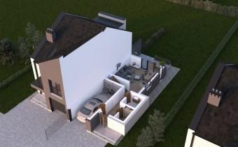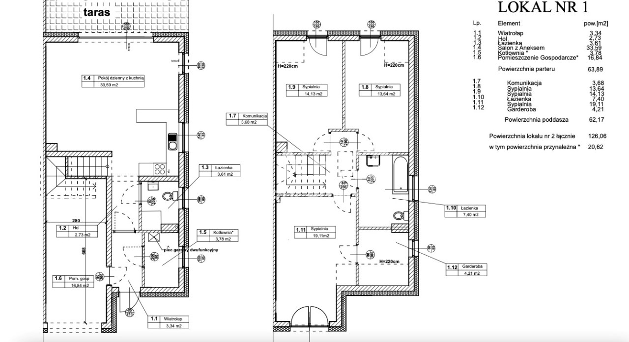Powierzchnia każdego lokalu to 126,06 m2. Powierzchnia działki 981 m2.