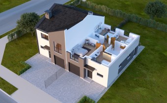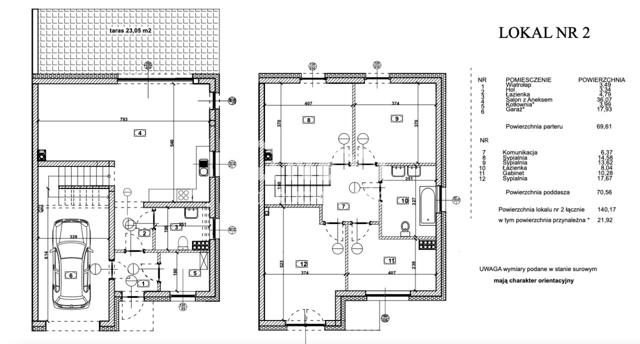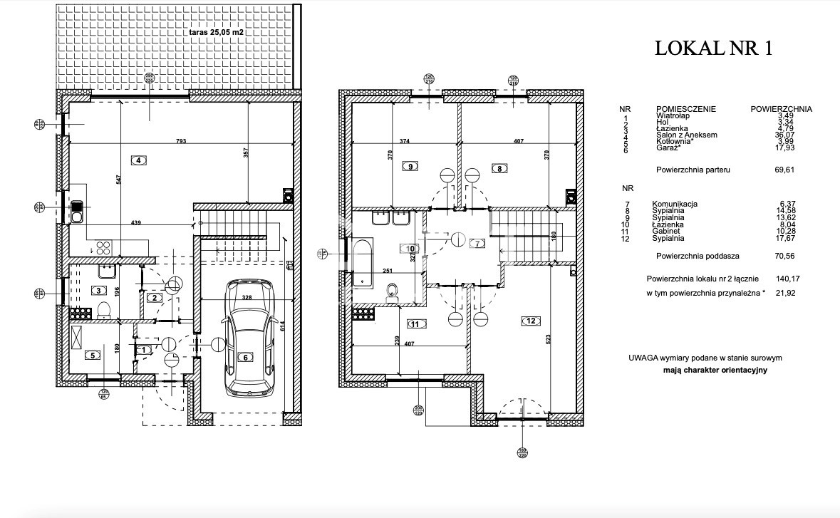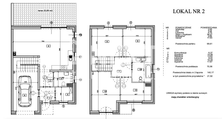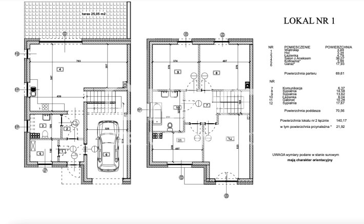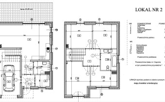 Powierzchnia każdego lokalu to 140,17 m2 + strych około 40m2. Powierzchnia działki 1005 m2.
