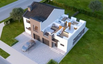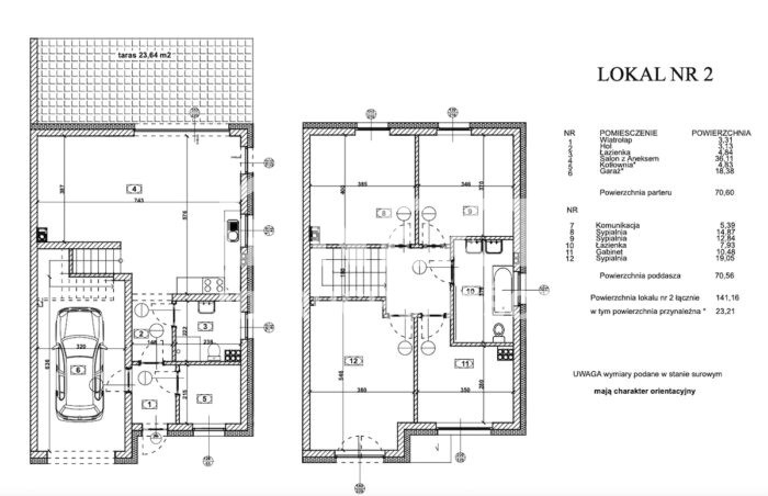 Powierzchnia każdego lokalu to 141,16 m2 + strych około 40m2. Powierzchnia działki 979 m2.