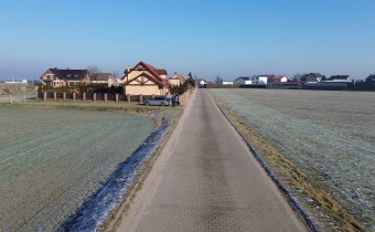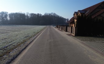 Ulica Kasztanowa utwardzona kostką brukową oraz oświetlenie uliczne.