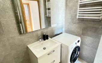 Mieszkanie posiada 2 niezależne pokoje, pokój z aneksem kuchennym. Kuchnia kompleksowo wyposażona. W łazience znajduje się pralka, kabina prysznicowa oraz umywalka, wc. Jeden pokój posiada przestronny balkon.